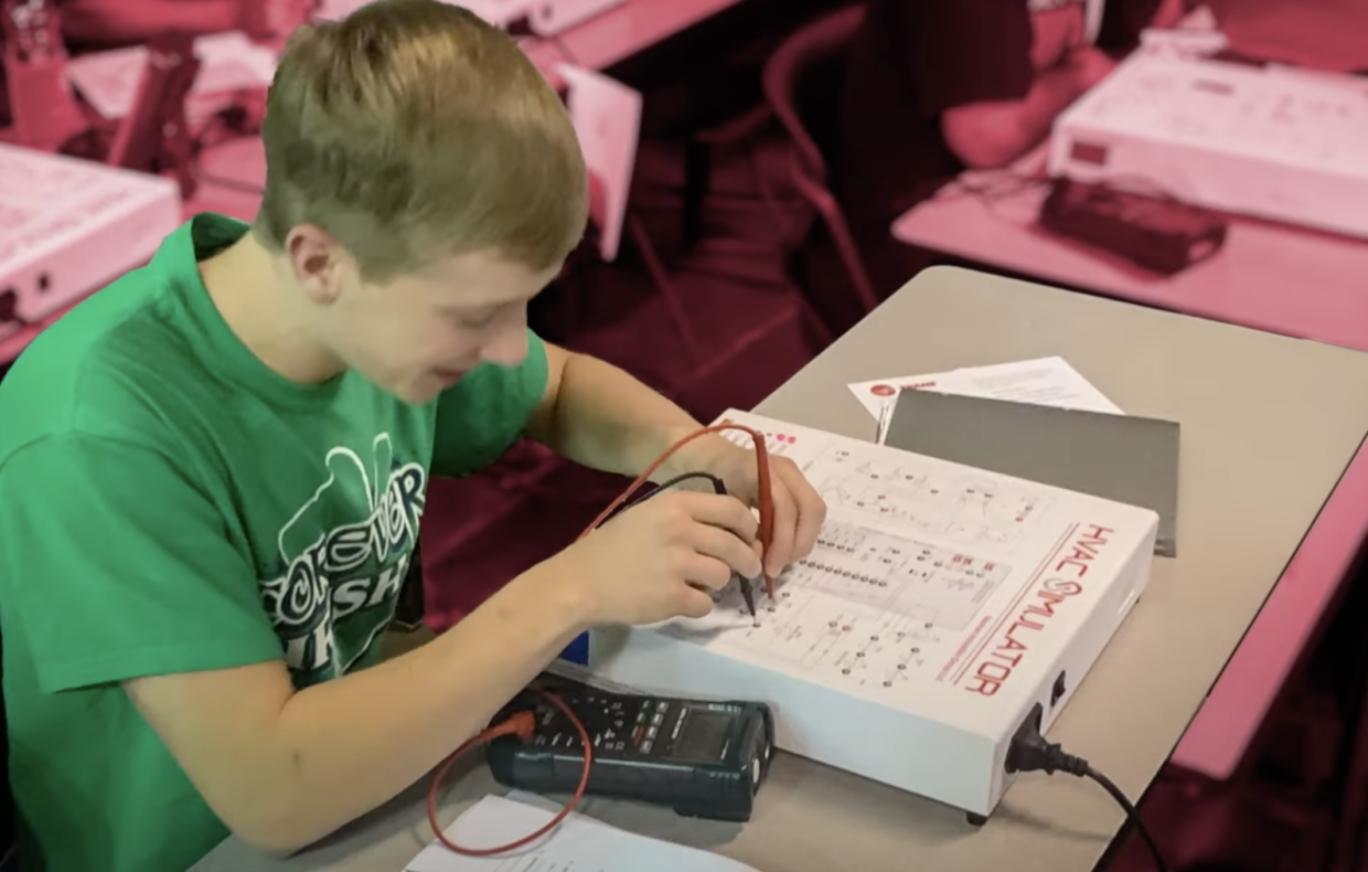 Above all, it’s a teaching tool that allows students and entry-level technicians to understand the electrical fundamentals of HVAC troubleshooting, improve their ability to read schematics, and boost their confidence using a multimeter in a safe, controlled environment.